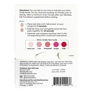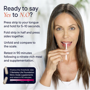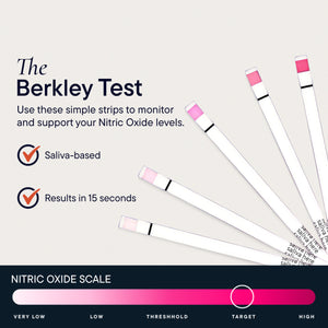 Quickly check your Nitric Oxide levels with Berkeley Life's patented, non-invasive saliva test strips. Perfect for daily use, these strips help establish a baseline, track levels before workouts, and monitor after nitrate-rich meals or supplements.